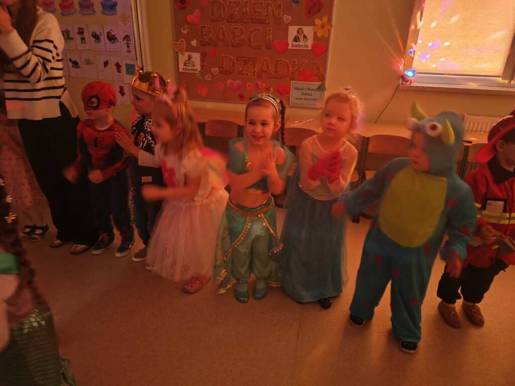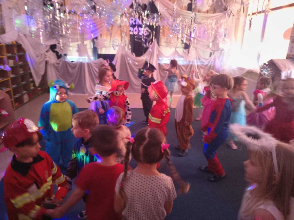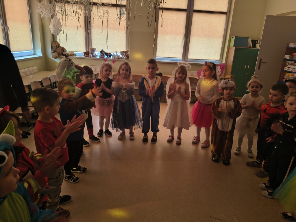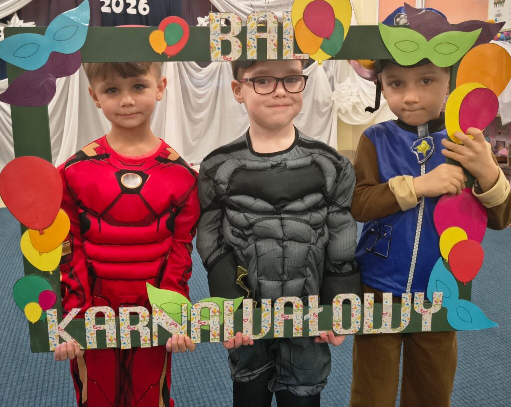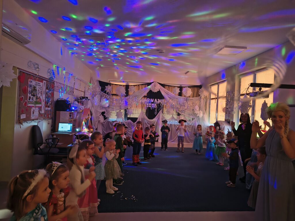 17 lutego w naszym przedszkolu odbył się wyjątkowy bal karnawałowy — Bal w Krainie Lodu. Atmosfera była bajkowa, a sala zamieniła się w prawdziwe zimowe królestwo. Dziewczynki najczęściej wybierały stroje Elzy, ale nie zabrakło też innych, przeróżnych kostiumów, które dodały wydarzeniu kolorów i fantazji. Każde dziecko wyglądało jak bohater własnej opowieści. Podczas balu nie brakowało tańców, zabaw muzyczno‑ruchowych i wspólnej radości. Dzieci bawiły się świetnie, a uśmiechy nie znikały z ich twarzy przez cały dzień.