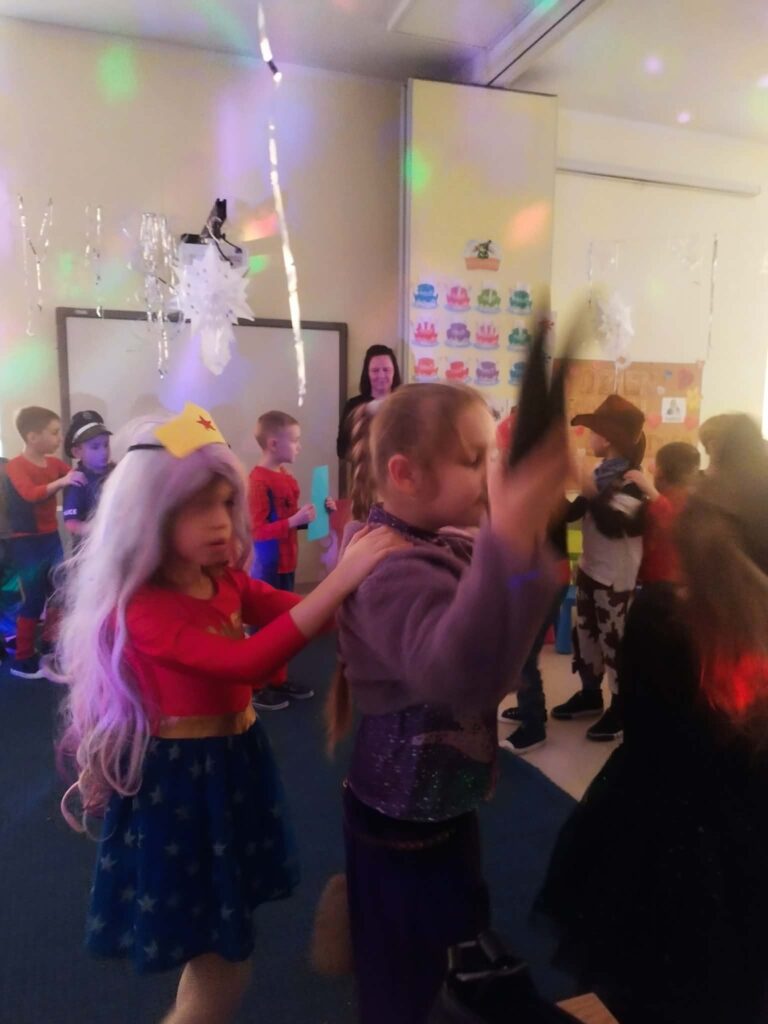 Tegoroczny bal karnawałowy w przedszkolu odbył się pod hasłem „Kraina Lodu”, Sala zamieniła się w zimową krainę pełną śnieżynek i lodowych dekoracji. Dzieci przebrane za Elsę, Annę, bałwanki, księżniczki i inne bajkowe postacie z radością uczestniczyły w tańcach i wesołych pląsach. Wspólne zabawy przy muzyce dostarczyły wszystkim mnóstwo uśmiechu i niezapomnianych wrażeń.