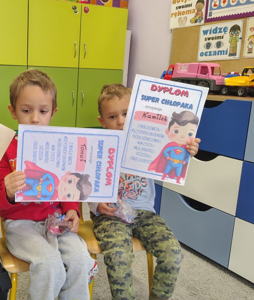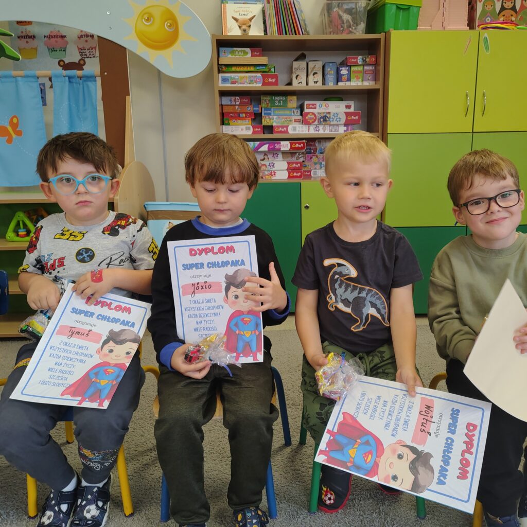 30 września obchodziliśmy w naszej grupie wyjątkowe święto – Dzień Chłopaka! Z tej okazji nasi mali bohaterowie zostali obdarowani drobnymi upominkami i mocą serdecznych życzeń. Nie zabrakło wspólnych zabaw, konkursów i uśmiechu na twarzach wszystkich dzieci. To był dzień pełen radości, integracji i dobrej zabawy!