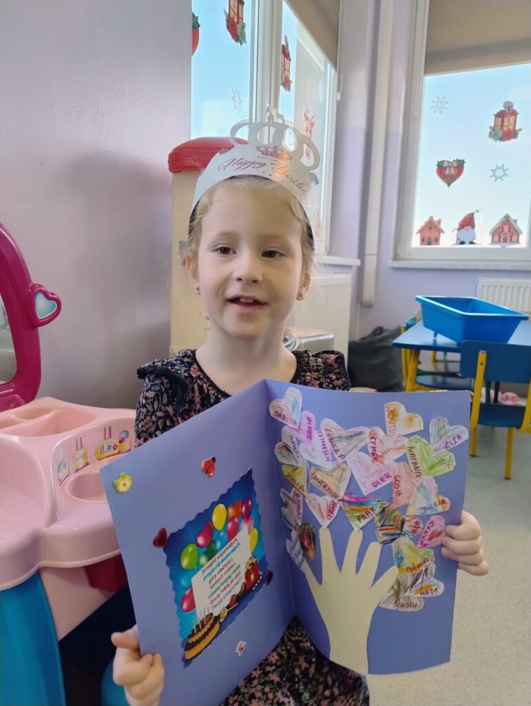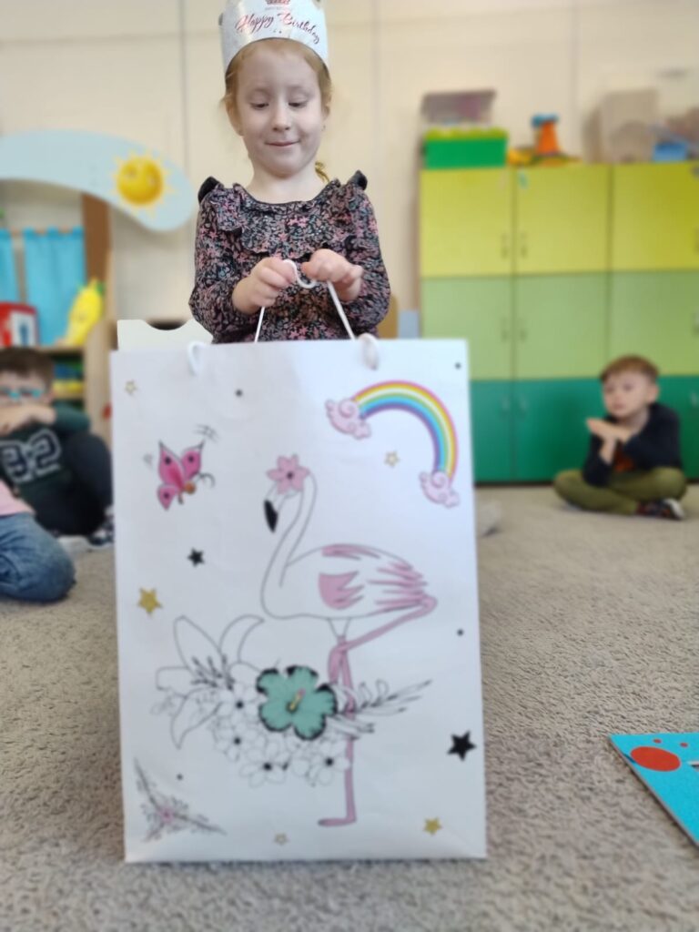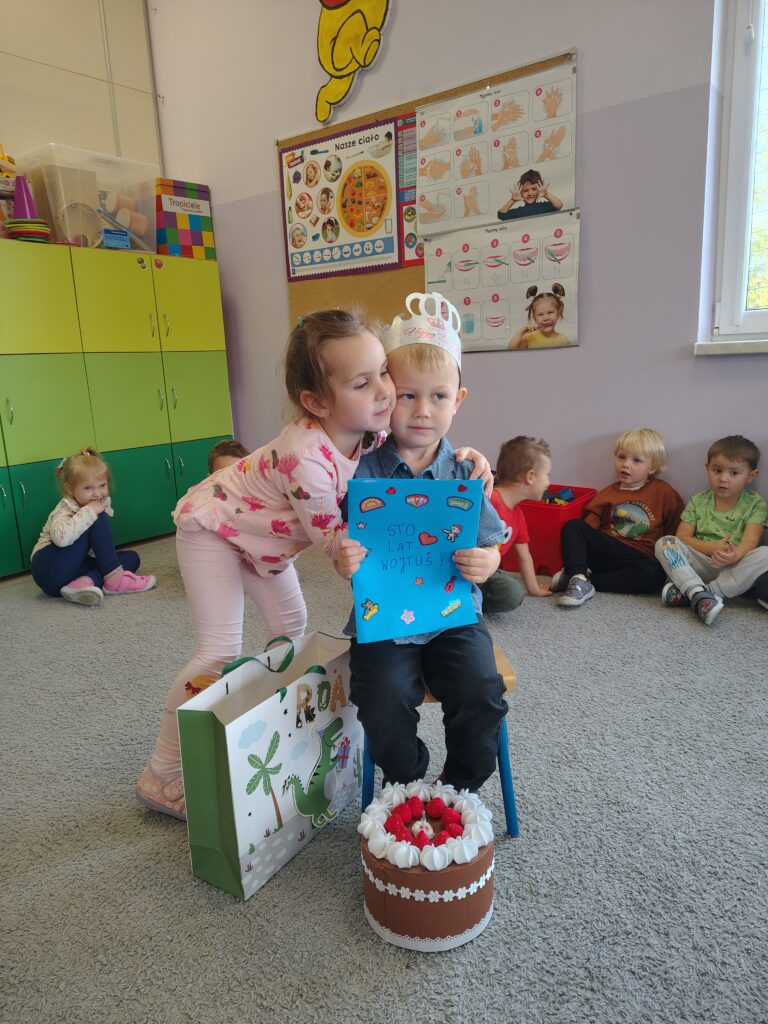 Koleżanki i koledzy z grupy złożyli im piękne życzenia, zaśpiewali „Sto lat”, a solenizanci przygotowali dla wszystkich niespodziankę — rozdali prezenciki, które sprawiły dzieciom wiele radości. Wspólne obchodzenie urodzin sprzyja integracji dzieci, buduje przyjaźnie i wzmacnia poczucie wspólnoty. Życzymy naszym solenizantom dużo zdrowia, szczęścia, spełnienia marzeń oraz wielu wspaniałych chwil w gronie przyjaciół!!