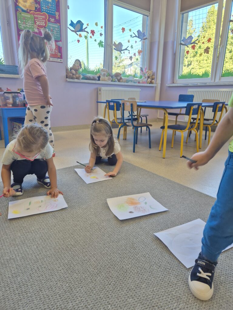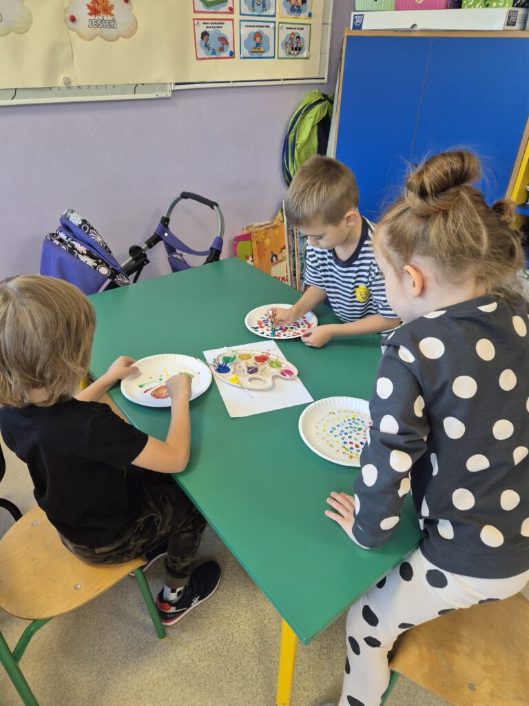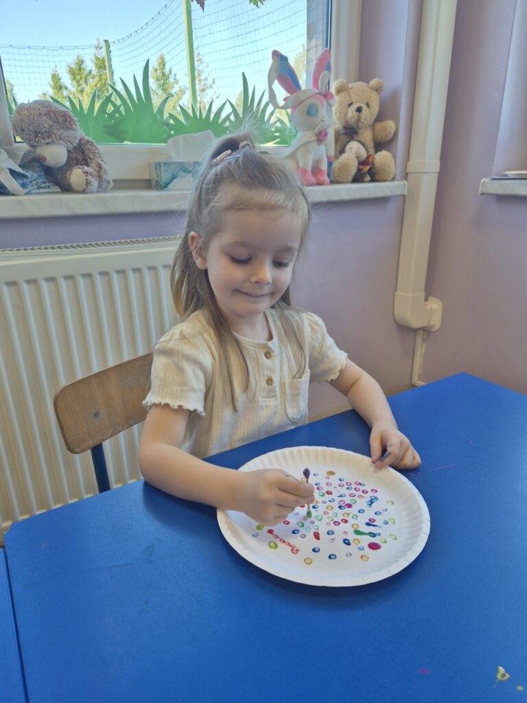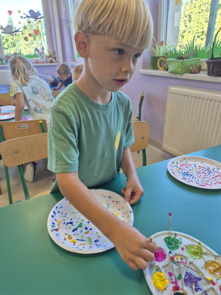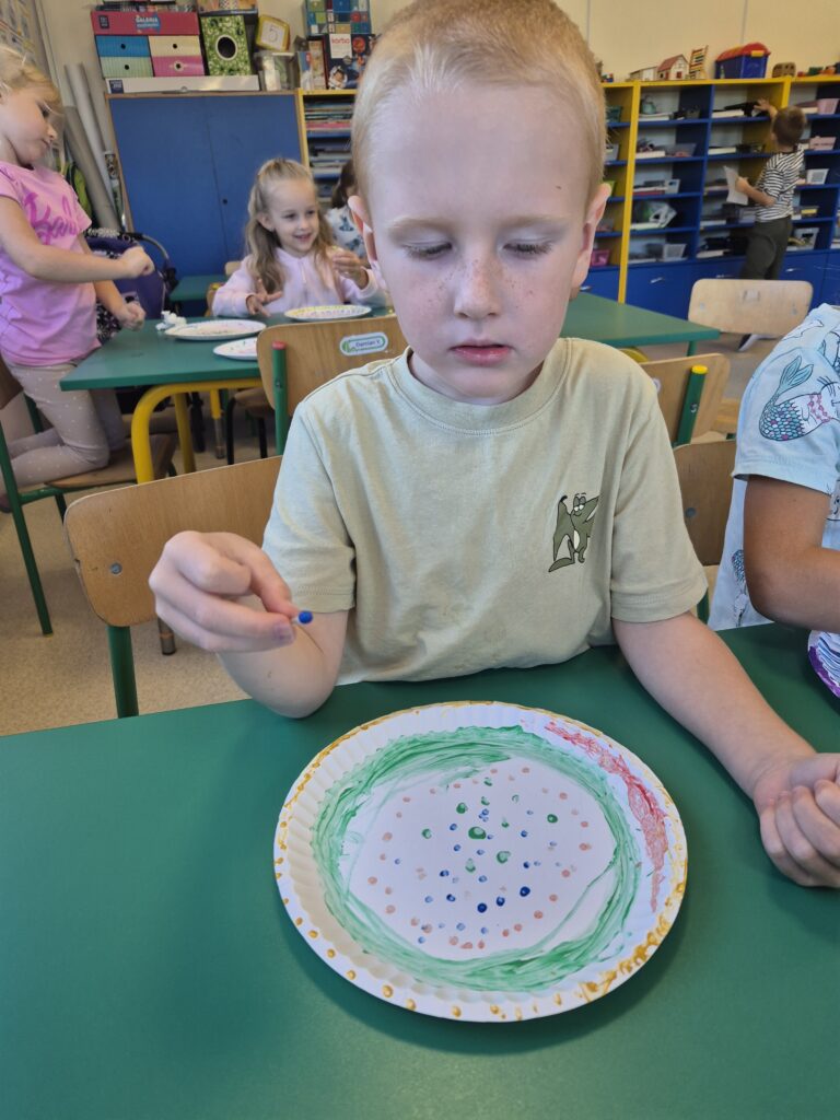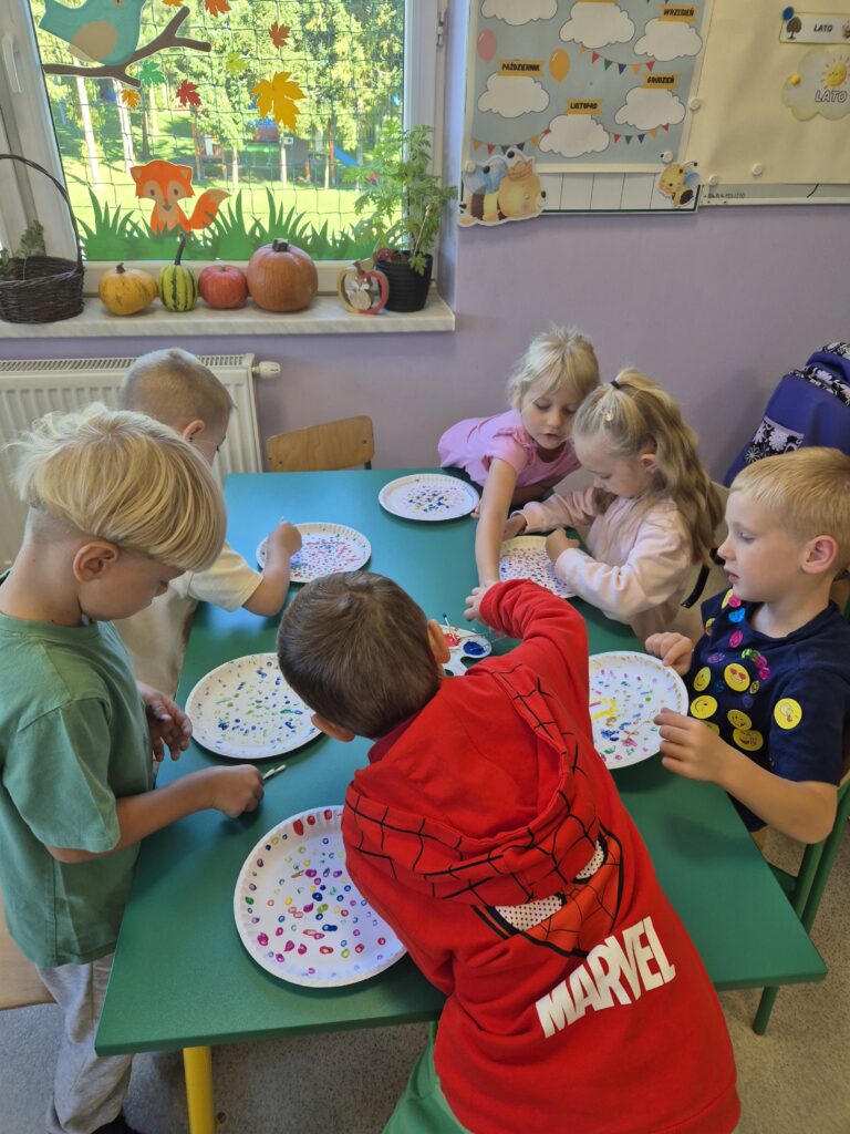 15 września w naszym przedszkolu obchodziliśmy Międzynarodowy Dzień Kropki – święto kreatywności, odwagi i wiary we własne możliwości. Tego dnia w naszej sali pojawiło się mnóstwo kolorowych kropek, a dzieci uczestniczyły w ciekawych i twórczych zabawach. Przedszkolaki malowały farbami barwne kompozycje z kropek, tworząc niepowtarzalne dzieła sztuki. Z plasteliny powstawały wesołe, wypukłe kropki i obrazki pełne fantazji. Dzieci mogły też obejrzeć film o Vashti – dziewczynce, która dzięki jednej małej kropce odkryła swój talent i uwierzyła w siebie. Historia ta pokazała wszystkim, że każdy z nas ma w sobie wyjątkowe możliwości. Był to dzień pełen radości, zabawy i odkrywania, że nawet z małej kropki może powstać coś wielkiego.