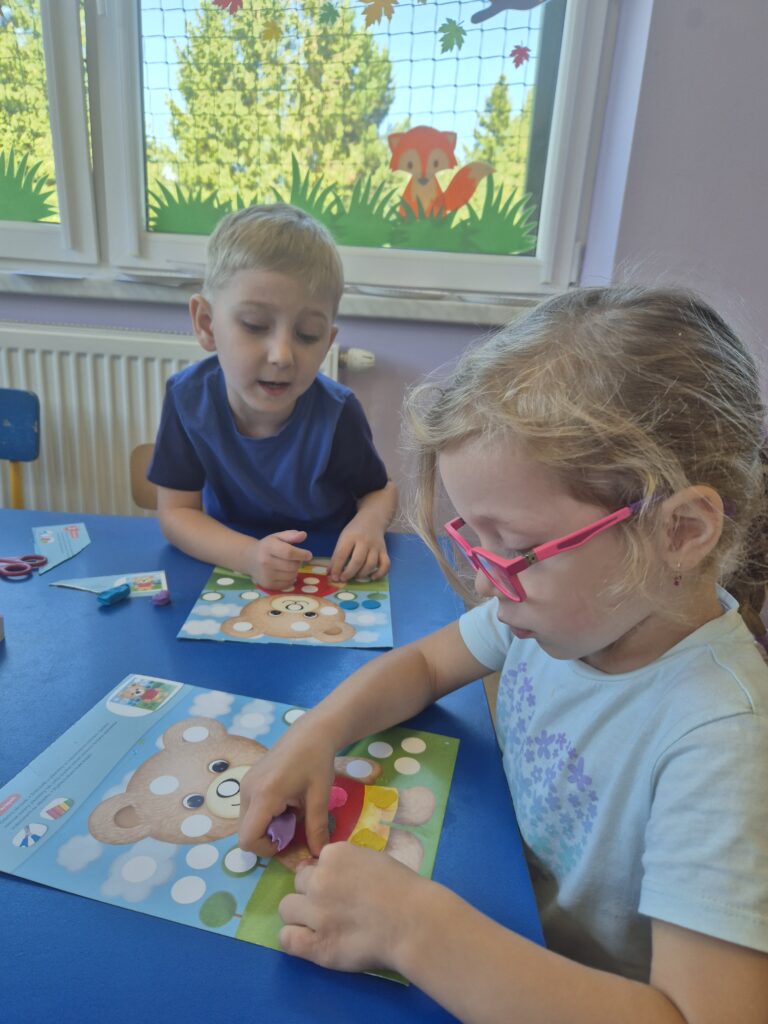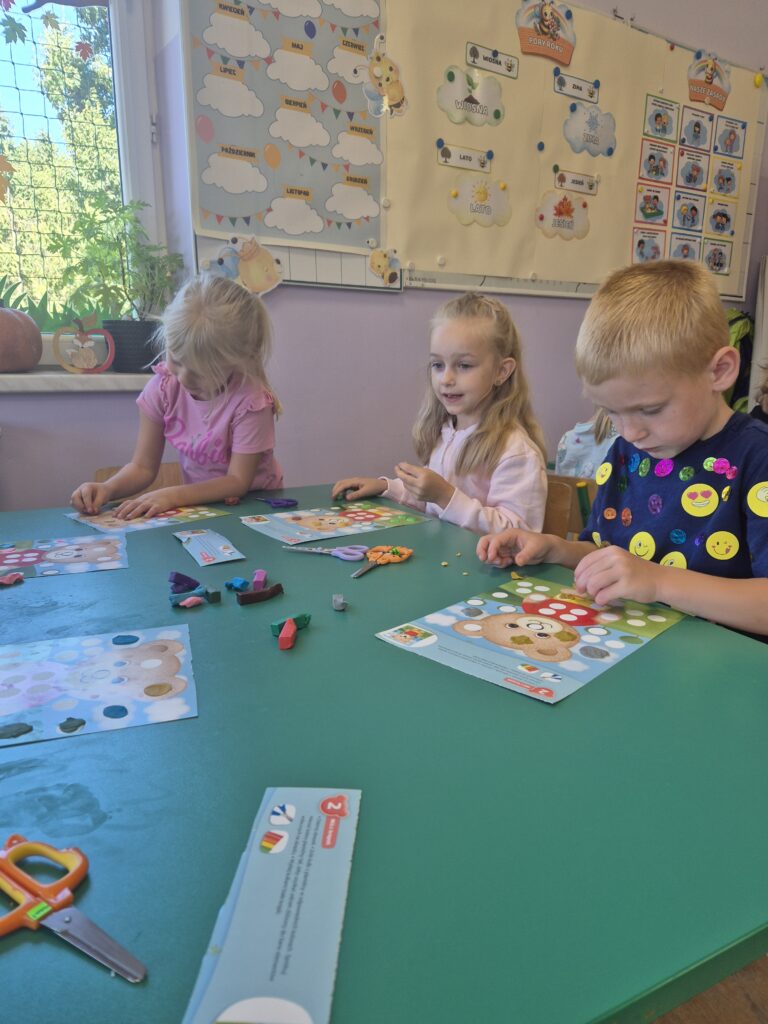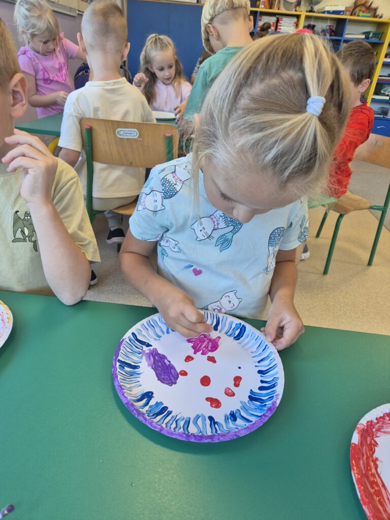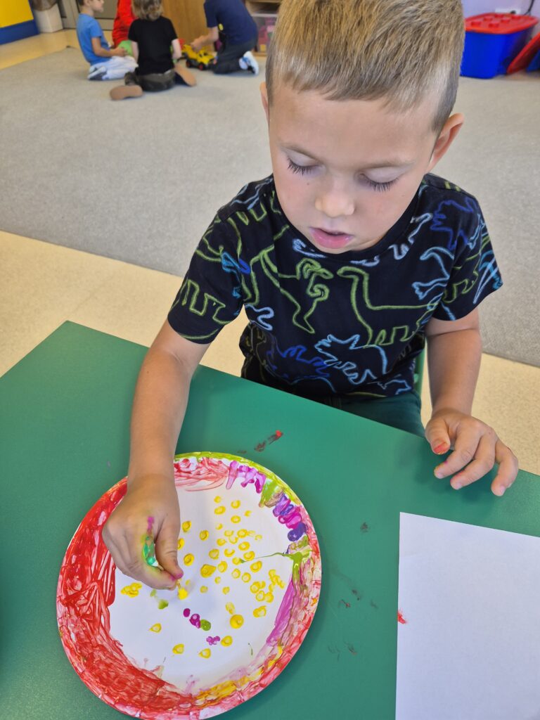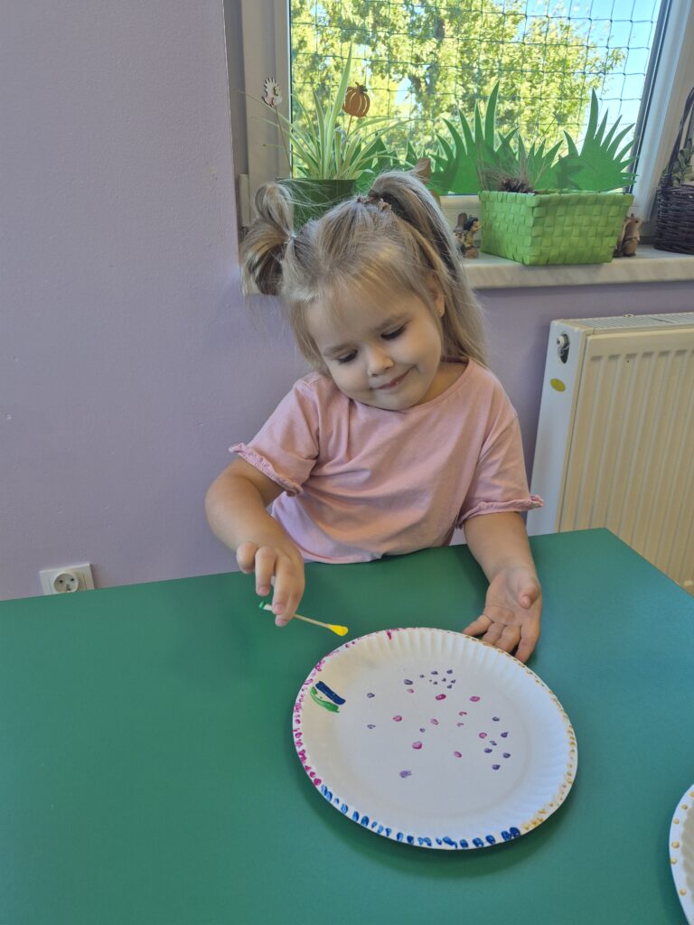 15 września w naszym przedszkolu obchodziliśmy Międzynarodowy Dzień Kropki – święto kreatywności, odwagi i wiary we własne możliwości. Tego dnia w naszej sali pojawiło się mnóstwo kolorowych kropek, a dzieci uczestniczyły w ciekawych i twórczych zabawach. Przedszkolaki malowały farbami barwne kompozycje z kropek, tworząc niepowtarzalne dzieła sztuki. Z plasteliny powstawały wesołe, wypukłe kropki i obrazki pełne fantazji. Dzieci mogły też obejrzeć film o Vashti – dziewczynce, która dzięki jednej małej kropce odkryła swój talent i uwierzyła w siebie. Historia ta pokazała wszystkim, że każdy z nas ma w sobie wyjątkowe możliwości. Był to dzień pełen radości, zabawy i odkrywania, że nawet z małej kropki może powstać coś wielkiego.