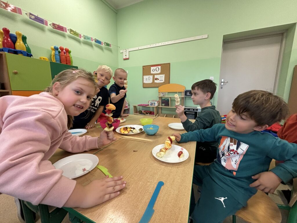 30 września, chłopcy z naszej grupy, w ramach świętowania Dnia Chłopaka, świetnie się bawili biorąc udział w „WESOŁEJ SESJI FOTOGRAFICZNEJ”, a także tańcząc do ulubionych dziecięcych przebojów. Dziewczynki złożyły chłopcom najserdeczniejsze życzenia, obdarowały ich drobnymi upominkami, a następnie wszystkie przedszkolaki zajadały szaszłyki owocowe własnej kompozycji. Było więc smacznie, zdrowo i wesoło 🙂 Raz jeszcze wszystkiego najlepszego CHŁOPCY 🙂