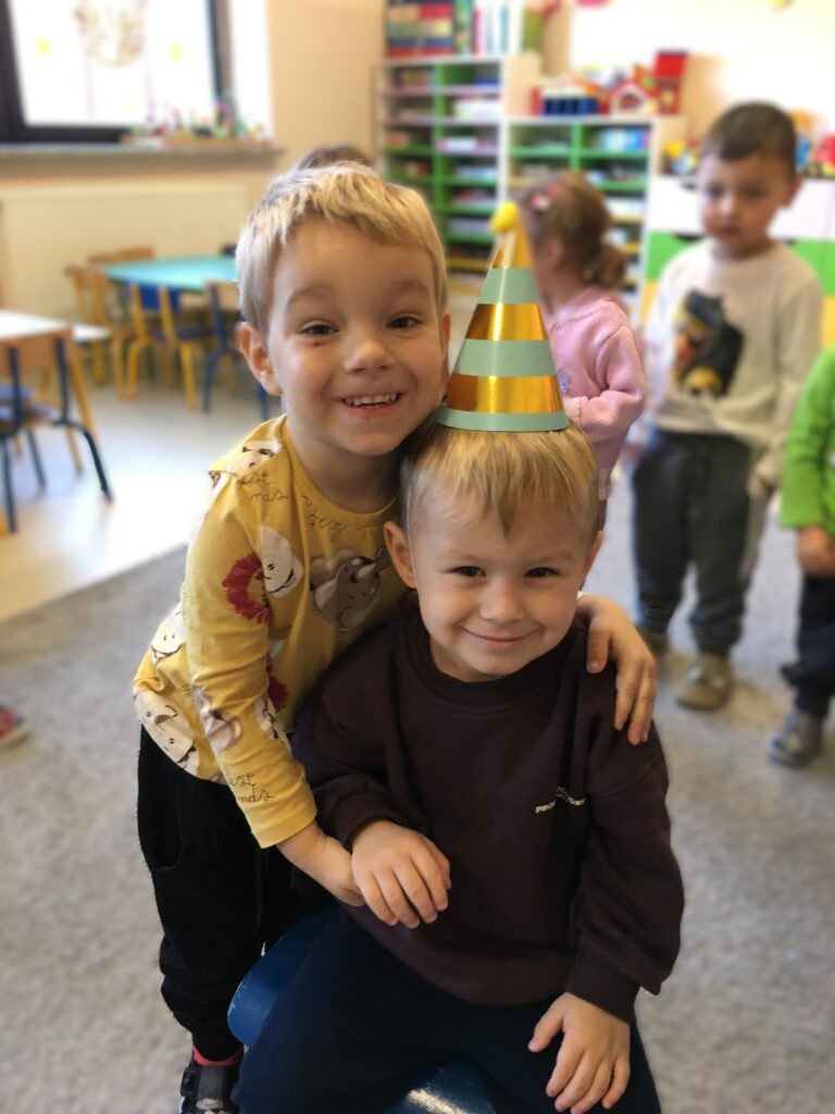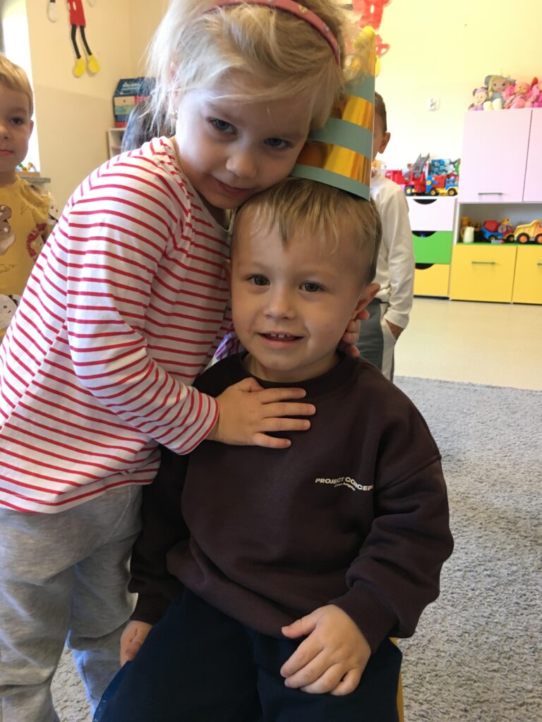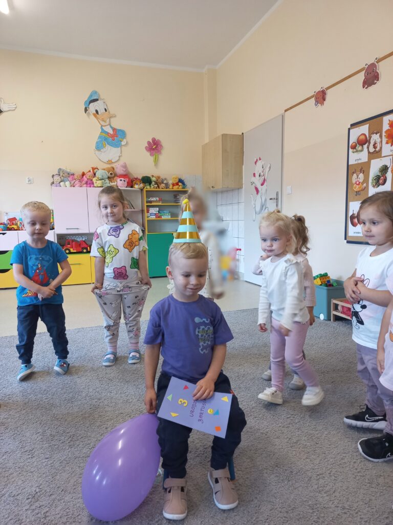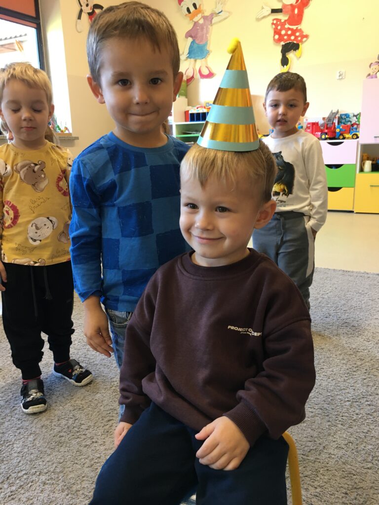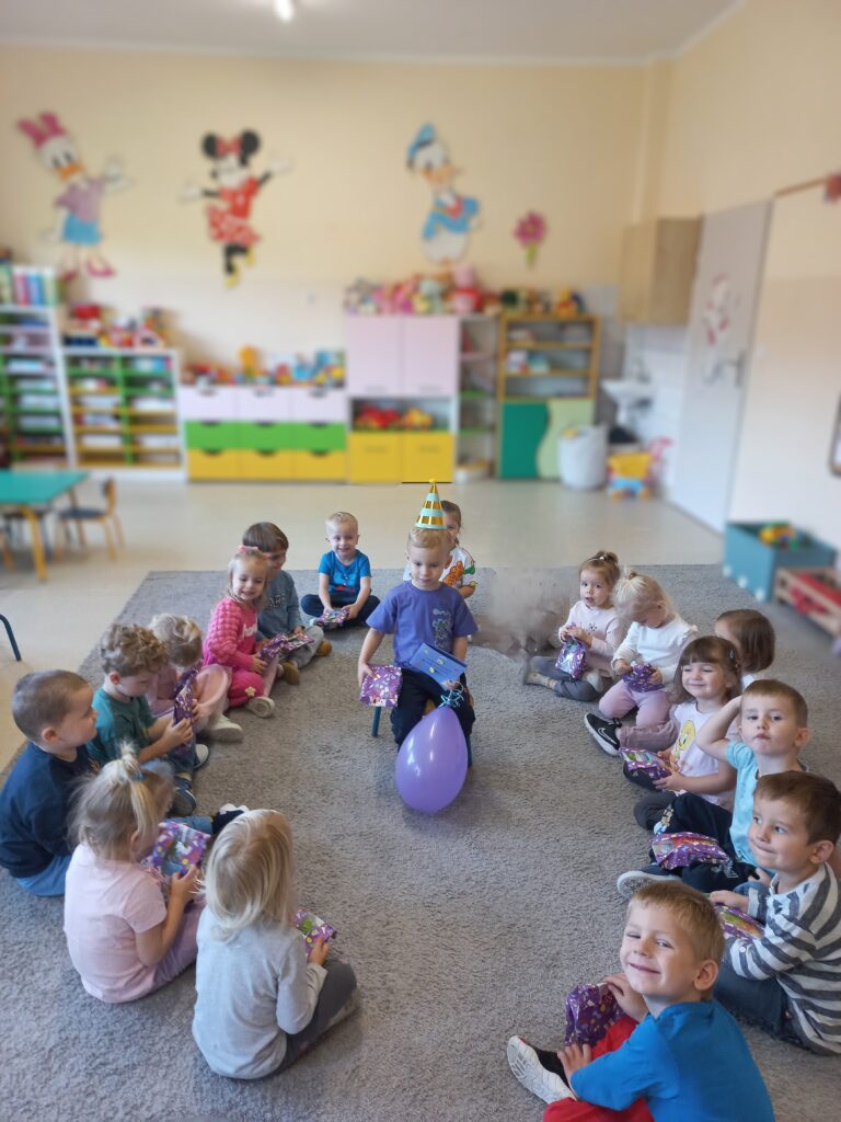 W październiku świętowaliśmy urodziny Bartusia i Olusia. To był wyjątkowy dzień pełen radości, muzyki i wspólnej zabawy. Dzieci złożyły solenizantom serdeczne życzenia, zaśpiewały gromkie „Sto lat”, a chłopcy otrzymali urodzinowe kartki od całej grupy.