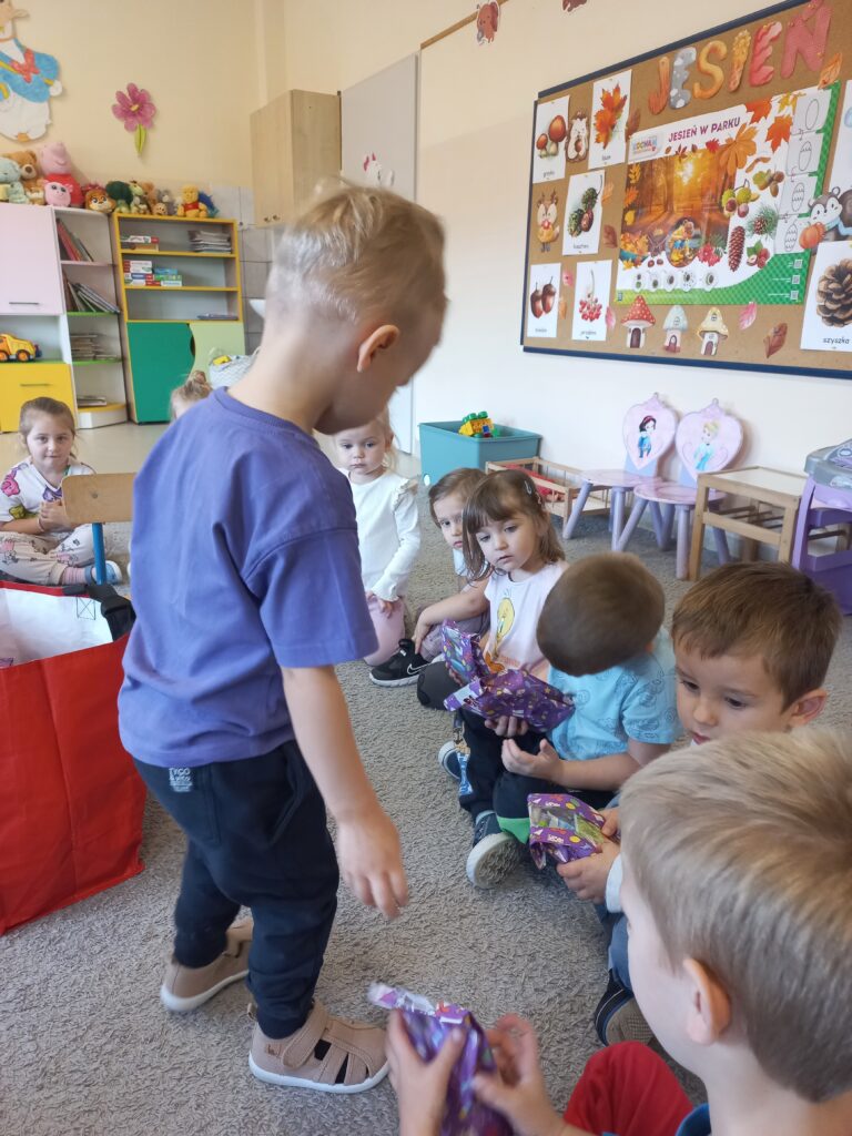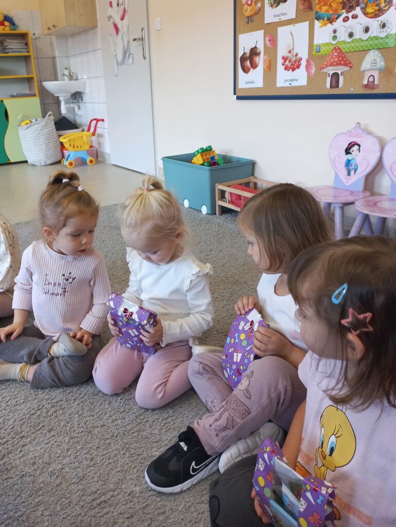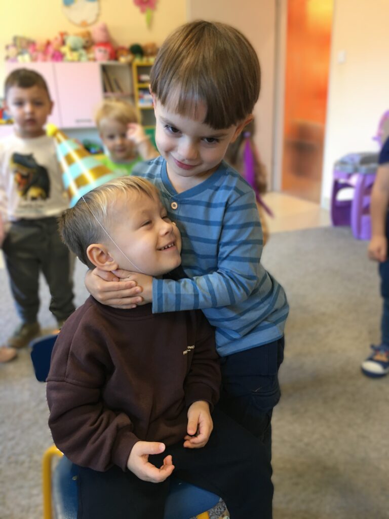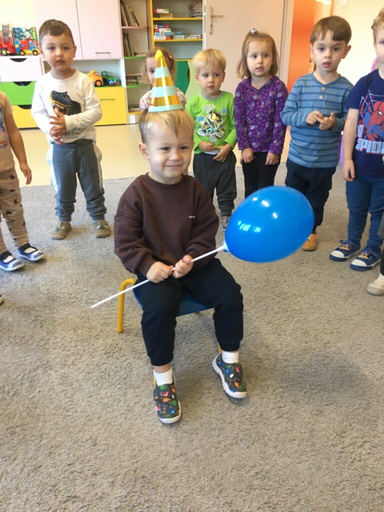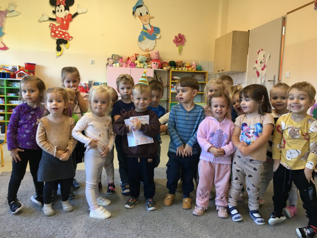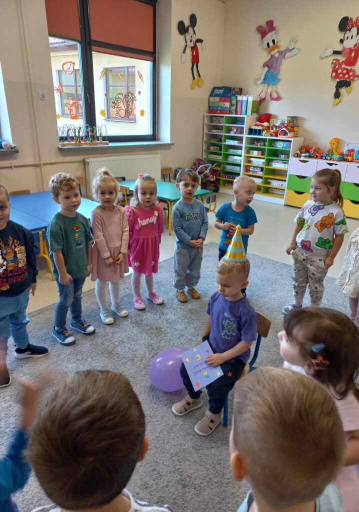 W październiku świętowaliśmy urodziny Bartusia i Olusia. To był wyjątkowy dzień pełen radości, muzyki i wspólnej zabawy. Dzieci złożyły solenizantom serdeczne życzenia, zaśpiewały gromkie „Sto lat”, a chłopcy otrzymali urodzinowe kartki od całej grupy.