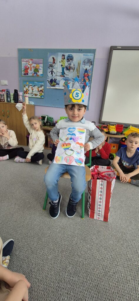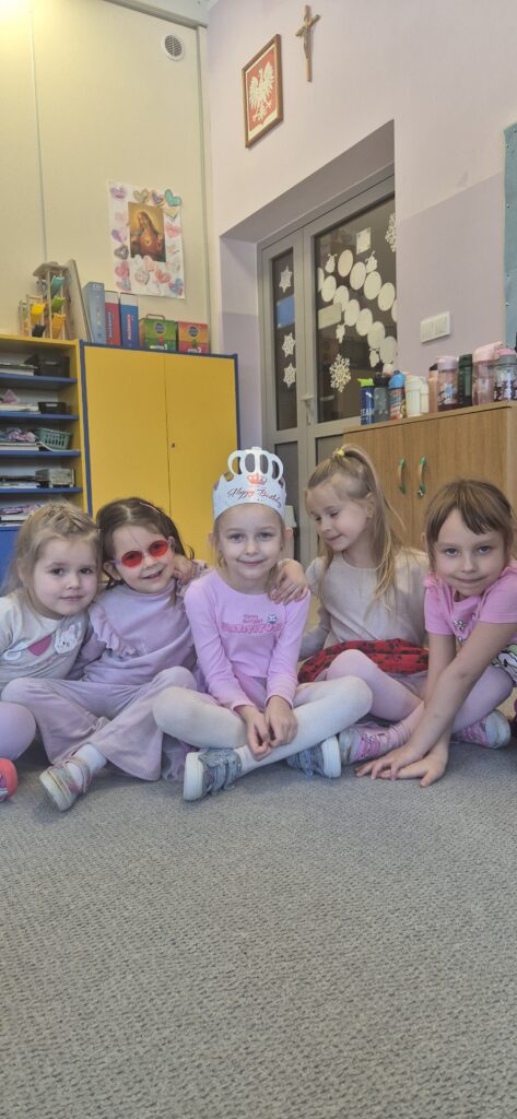 W styczniu w naszej grupie swoje urodziny świętowali Antoś, Anastazja, Wiktorek i Amelka. Były to wyjątkowe dni, pełne radości, uśmiechu i wspólnej zabawy. Podczas świętowania bawiliśmy się przy muzyce, tańczyliśmy w kole oraz braliśmy udział w wesołych zabawach integracyjnych. Dzieci przygotowały także piękne laurki. Z okazji urodzin życzymy naszym solenizantom dużo zdrowia, codziennej radości, wspaniałych przygód oraz wielu serdecznych przyjaciół. Niech każdy dzień w przedszkolu będzie dla Was pełen uśmiechu, zabawy i nowych, ciekawych odkryć!