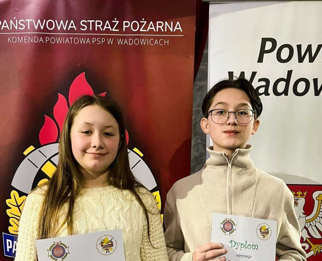 W kategorii klas V–VIII wyróżnienia zdobyli Patryk Mydlarz z klasy 6a oraz Maria Kudłacik z klasy 6b.