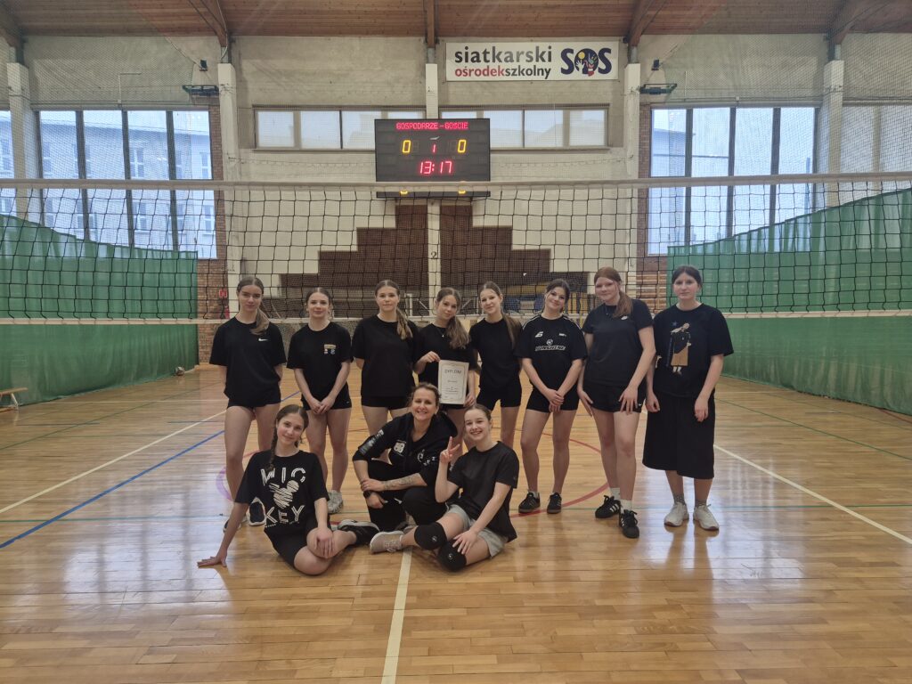Drużynę dziewcząt tworzyły: Aleksandra Galus, Maja Bierczak, Kinga Rusin, Laura Diac, Kornelia Orawiec, Amelia Lachendrowicz, Oliwia Zielińska, Jagoda Stuglik, Tatiana Maiuk i Viktoria Yedynak. Uczennice z pełnym zaangażowaniem walczyły o każdy punkt, prezentując umiejętności, współpracę w zespole i sportową determinację. Ostatecznie zajęły V miejsce, zdobywając cenne doświadczenie i pokazując ducha walki w każdym meczu.