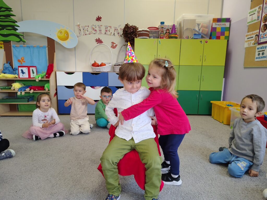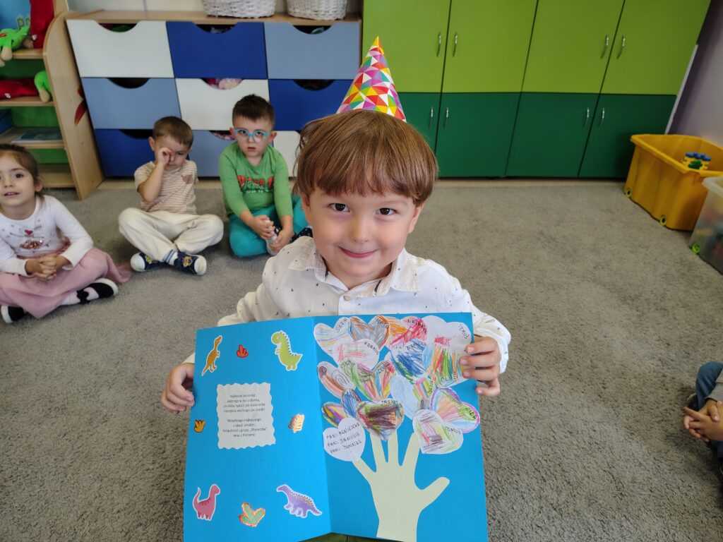 W październiku w naszej grupie świętowaliśmy urodziny Józia – to był wyjątkowy dzień pełen uśmiechu i życzliwości! Józio otrzymał od kolegów i koleżanek serdeczne życzenia, a cała grupa zaśpiewała mu głośne „Sto lat!”