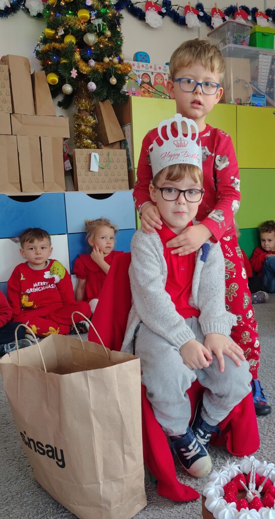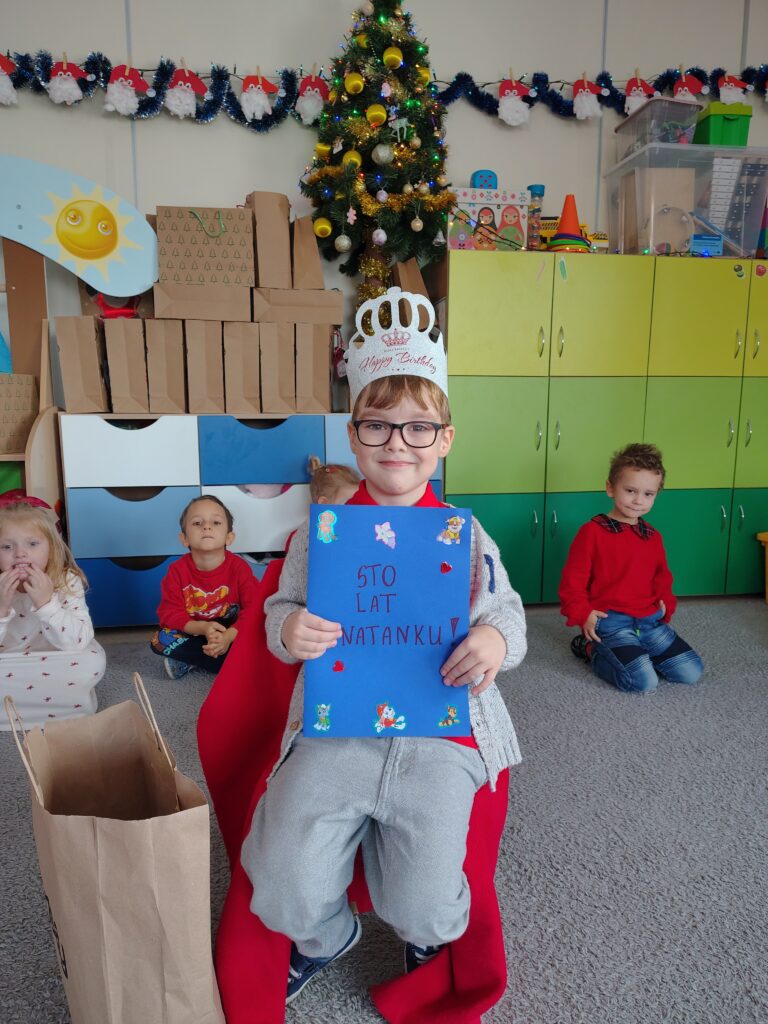 Natanek obchodził swoje urodzinki 3 grudnia. Były serdeczne życzenia, głośne „Sto lat” i mnóstwo wspólnych zdjęć, które zatrzymały te piękne chwile na dłużej. Największą niespodzianką okazały się prezenciki od jubilata, co sprawiło dzieciom ogromną radość. Atmosfera była pełna uśmiechów i szczęścia, a urodziny Natanka na długo pozostaną w pamięci wszystkich przedszkolaków!