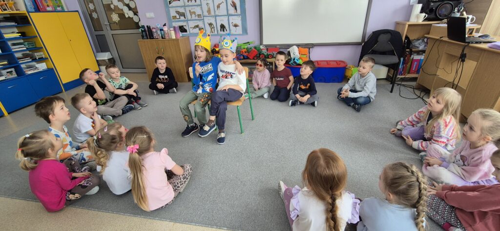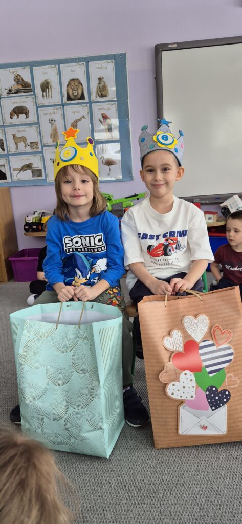 W lutym w naszym przedszkolu świętowaliśmy urodziny naszych wspaniałych Przedszkolaków – Dawida, Fabiana i Dymitra. 🎉 Dzieci wspólnie odśpiewały „Sto lat”, wręczyły Jubilatom laurki i złożyły serdeczne życzenia. Nie zabrakło tańców, zabaw oraz radosnej, ciepłej atmosfery.