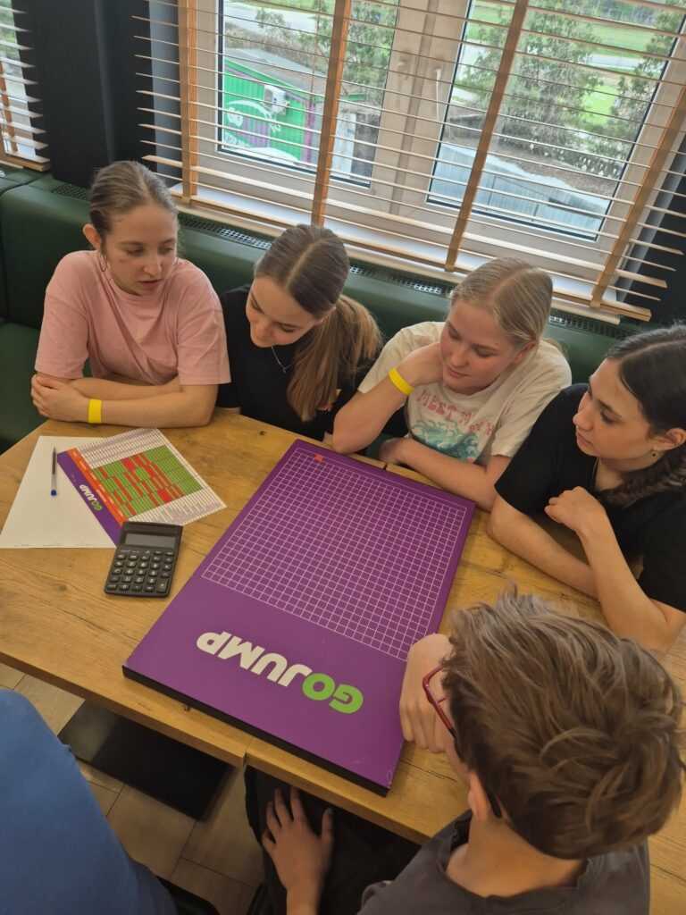 Po wizycie na Wawelu siódmoklasiści udali się do Parku Trampolin Go Jump Sikorki. Tam uczestniczyli w warsztatach „Biznes i zarządzanie”, podczas których rozwijali umiejętności pracy zespołowej oraz kompetencje strategiczne. Młodzież wspólnie stawiała czoła wyzwaniom wymagającym komunikacji, planowania i współpracy, co przebiegało w przyjaznej i dynamicznej atmosferze.