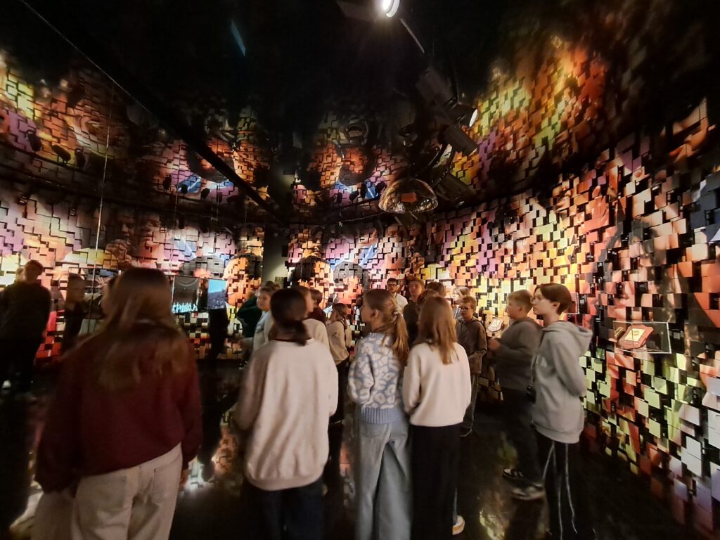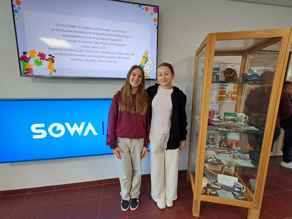 Pierwszym punktem programu była wizyta w Strefie Odkrywania, Wyobraźni i Aktywności SOWA. To nowoczesna przestrzeń edukacyjna, stworzona z myślą o dzieciach i młodzieży, gdzie nauka staje się fascynującą przygodą. Uczniowie mieli okazję uczestniczyć w ciekawych warsztatach, podczas których samodzielnie przeprowadzali eksperymenty, poznając prawa fizyki, biologii czy chemii. W centrum nauki znajdowały się liczne interaktywne stanowiska edukacyjne, które pobudzały wyobraźnię i zachęcały do zadawania pytań. Uczniowie z entuzjazmem budowali konstrukcje bądź obserwowali zjawiska optyczne. Zabawa szła w parze z nauką, a radość z odkrywania towarzyszyła wszystkim uczestnikom przez cały czas pobytu w SOWIE.