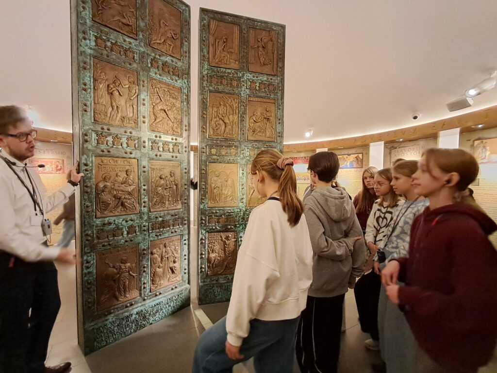 Po krótkim spacerze przez centrum Wadowic uczniowie dotarli do drugiego, bardzo ważnego punktu wycieczki, którym było Muzeum Dom Rodzinny Jana Pawła II. To właśnie tutaj, w niewielkim mieszkaniu na piętrze kamienicy przy rynku, 18 maja 1920 roku urodził się Karol Wojtyła. Zwiedzanie muzeum było dla wielu uczniów głębokim i poruszającym przeżyciem. Oprócz poznania faktów z życia Jana Pawła II, uczestnicy wycieczki mogli również lepiej zrozumieć Jego nauczanie, wartości, którymi się kierował, a także ogromny wpływ, jaki wywarł na świat. Szczególne wrażenie zrobiły autentyczne przedmioty z dzieciństwa i młodości oraz pamiątki, dokumenty i zdjęcia z różnych etapów życia Ojca Świętego.