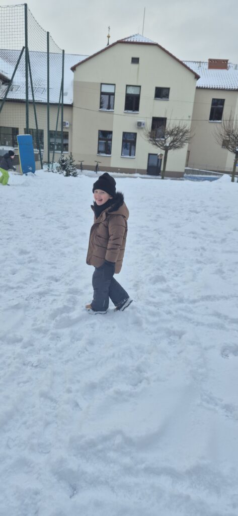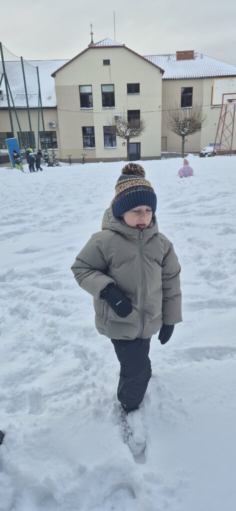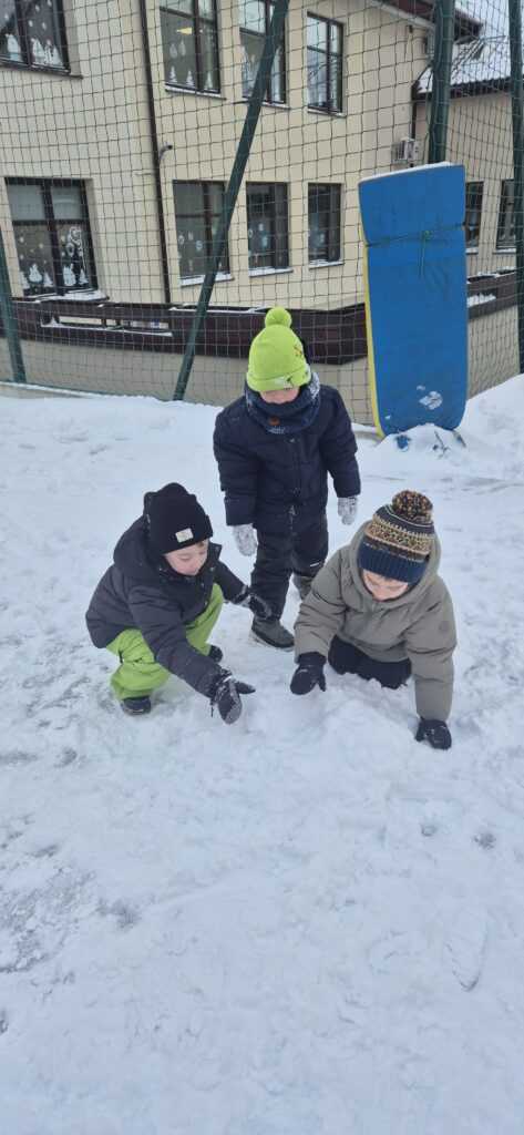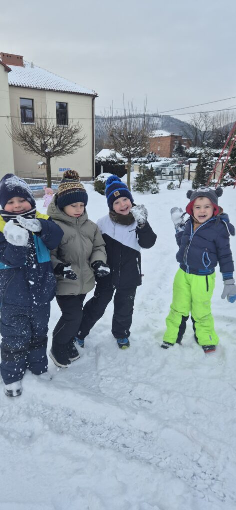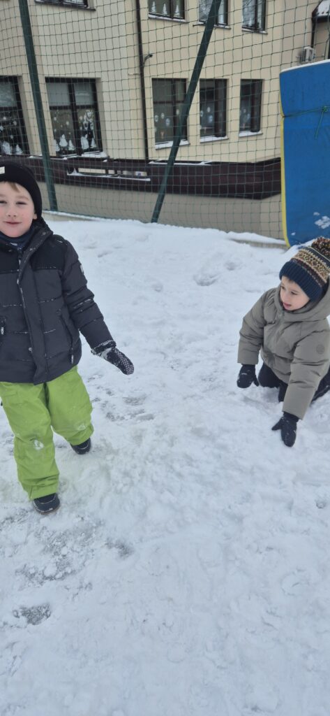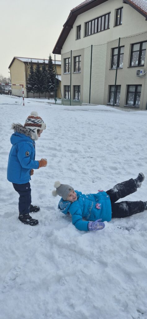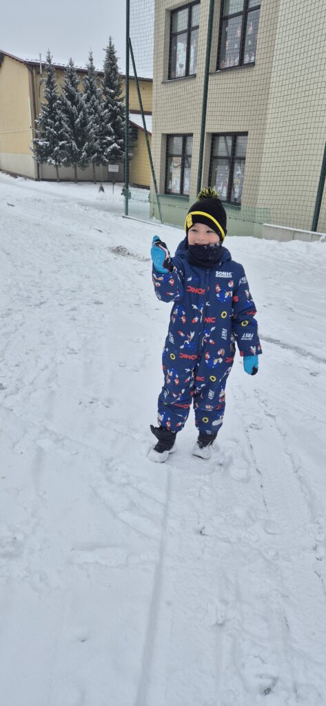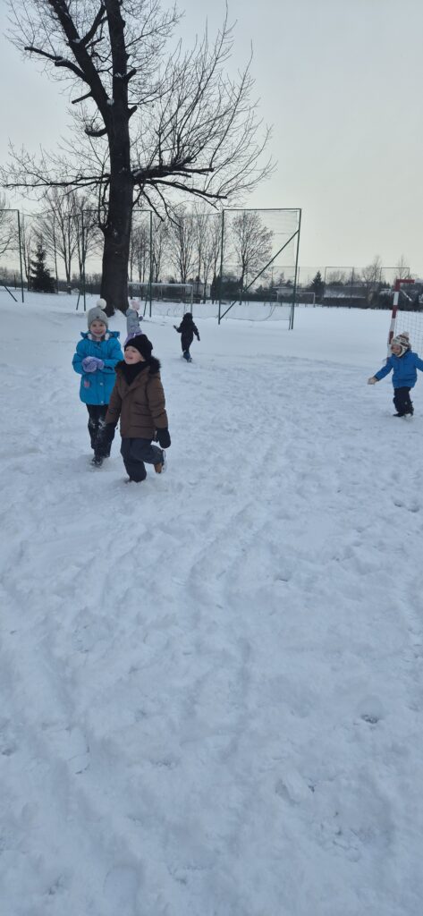Przedszkolaki z wielkim entuzjazmem korzystały z uroków zimy. Dzieci lepiły bałwany, robiły aniołki na śniegu, rzucały się śnieżkami oraz uczestniczyły w wesołych zabawach ruchowych. Nie zabrakło także spacerów po zaśnieżonym terenie, podczas których dzieci obserwowały zmiany zachodzące w przyrodzie.